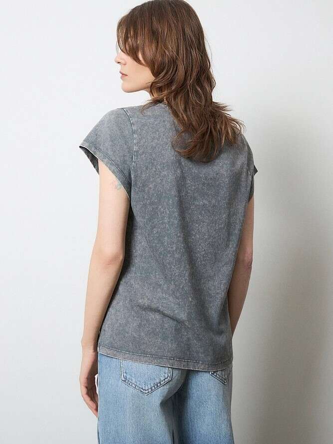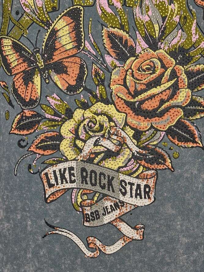 Camiseta, con estampado, con pedrería, con cuello redondo, corte regular, algodón.