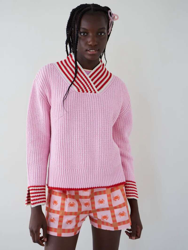 Chaqueta de rayas. Cuello solapa y manga corta. Made in Portugal.