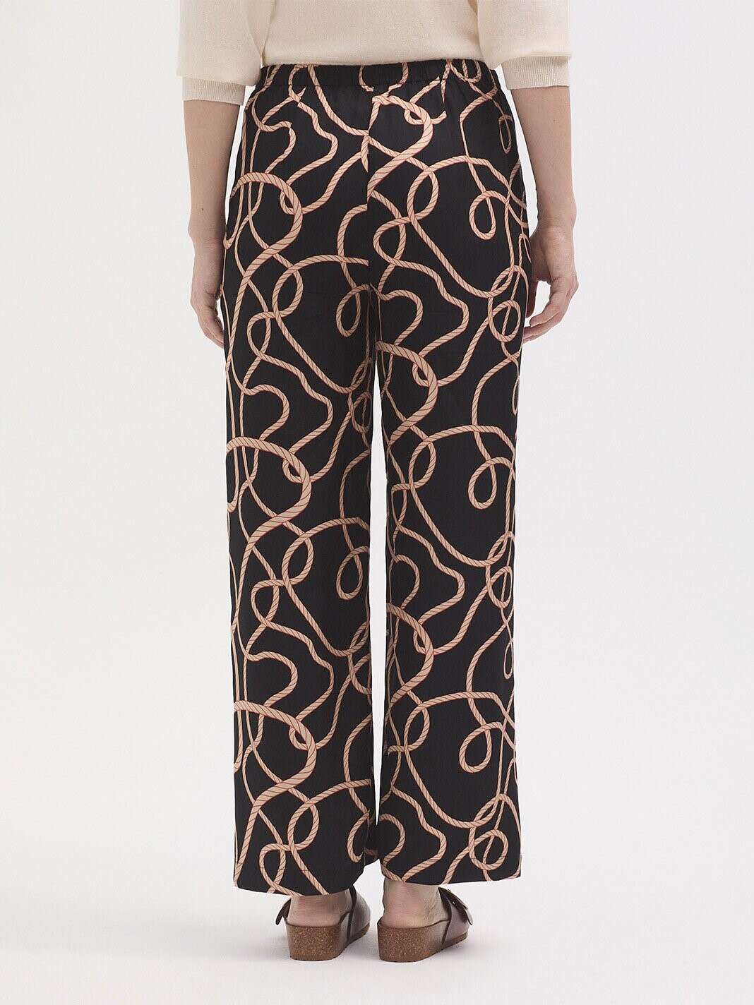 Pantalón en tejido cupro con estampado Anchor Ropes. Goma interior en la cinturilla. Bolsillos italianos. Pierna ancho.