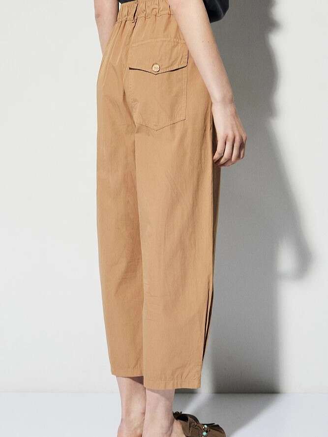 Pantalones de popelina de talle alto, con bolsillos laterales y un bolsillo trasero decorativo, de algodón, textura suave, corte regular.