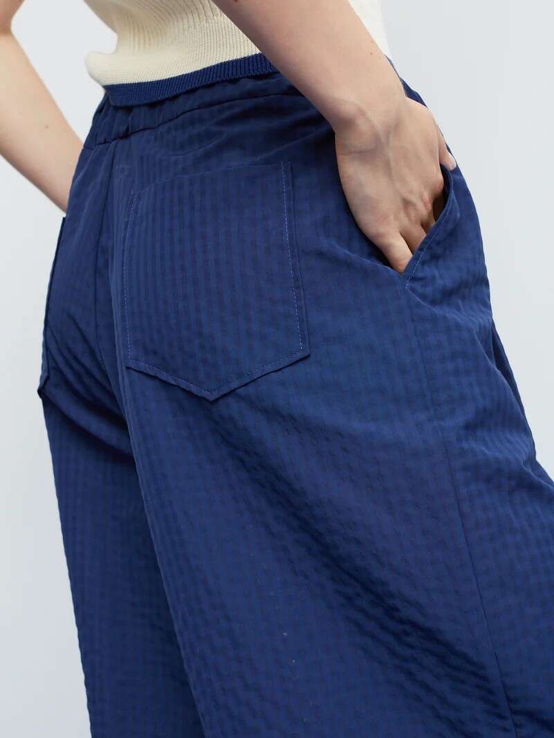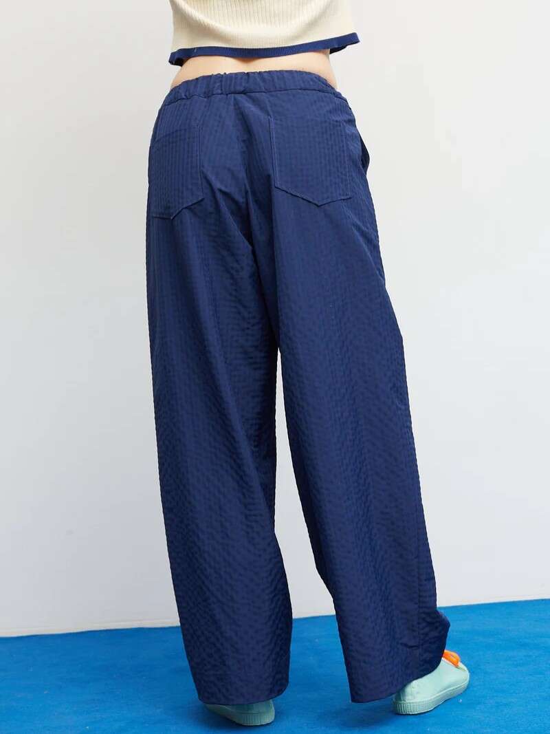 Un pantalón liso en tejido técnico pensado para aportar comodidad y estilo en tus looks con un corte amplio y relajado. Su diseño vichy azul lo hace un básico perfecto para tu armario. Tiene una cintura elástica acompañada de un cordón amarillo neón a contraste que le da un toque único y divertido.