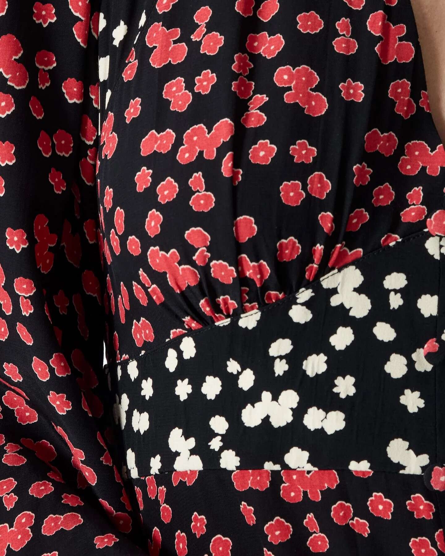 - Tejido: suave, mezcla ecológica. Estampado floral, multicolor negro y rojo.