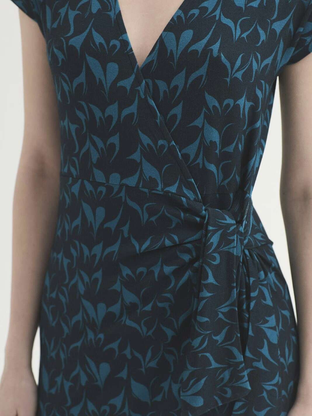 Vestido pareo confeccionado en viscosa estampada. Escote pico y manga caída. Made in Portugal.